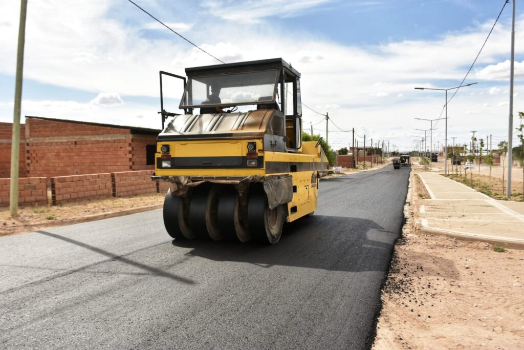 La Municipalidad de Plaza Huincul avanza con obras de mejoramiento de la infraestructura vial en la zona sur de la ciudad, con la ejecución de asfalto sobre la avenida Manuel Moreno, sector donde se desarrolla la construcción de la nueva Escuela N.º 22.